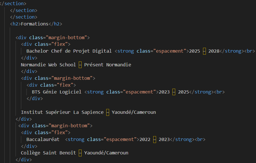 Étudiante en Cheffe de Projet Digital à la Normandie Web School, spécialisée en développement web. Passionnée par le numérique, je développe des projets alliant technique, organisation et créativité.